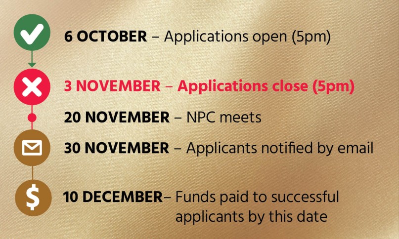 The Net Proceeds Committee meets in the second half of each month (except December) to consider the month's applications – you should expect to hear from us by the first week of the following month.